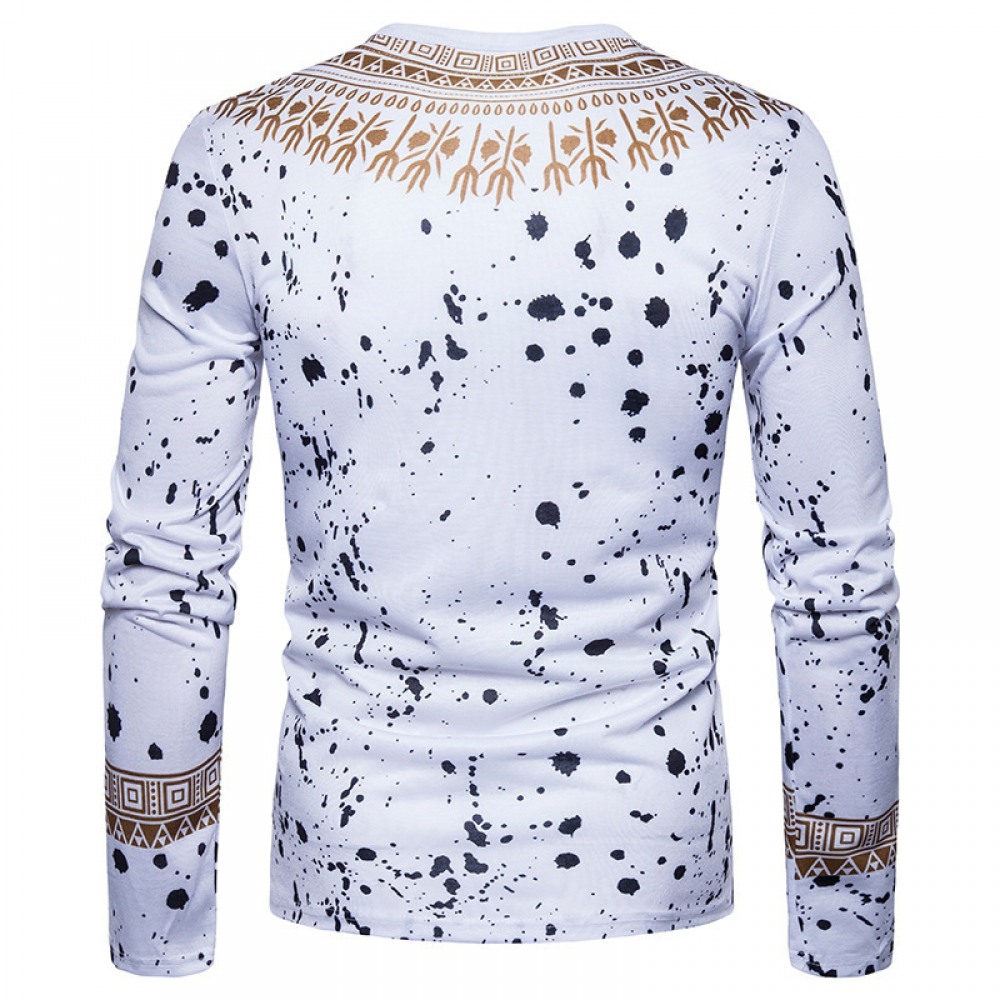 Fashion Men's Casual Personality Splash Ink Letter Printing Long-Sleeved T-Shirt