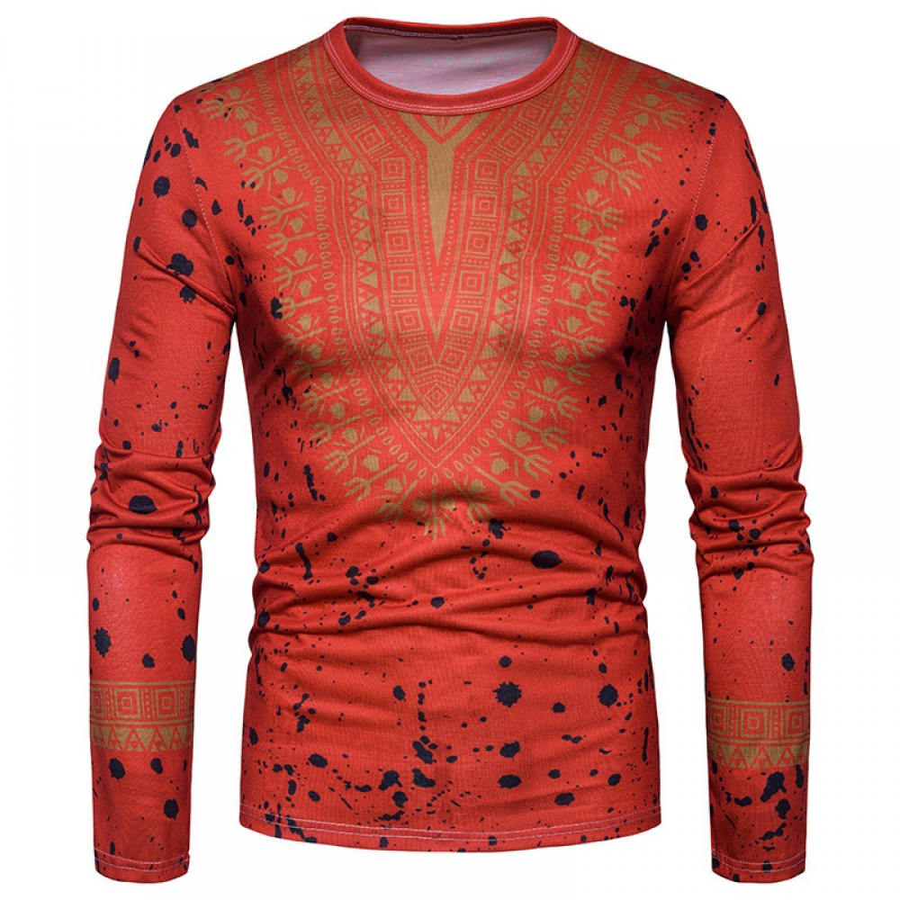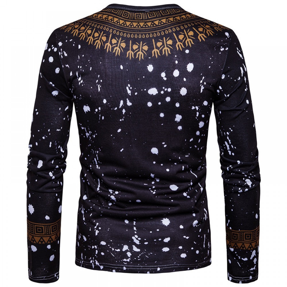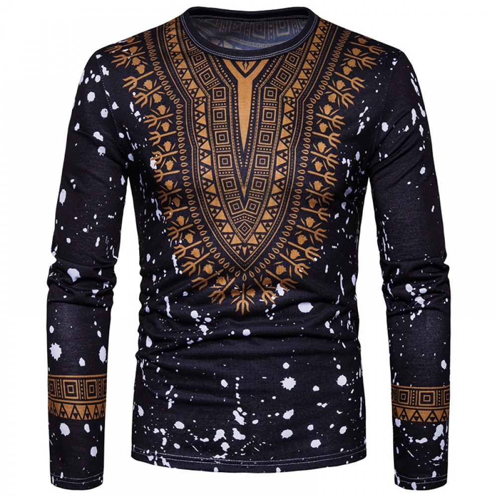 Fashion Male Creative Ethnic Style Floral 3D Printing Long-Sleeved T-Shirt