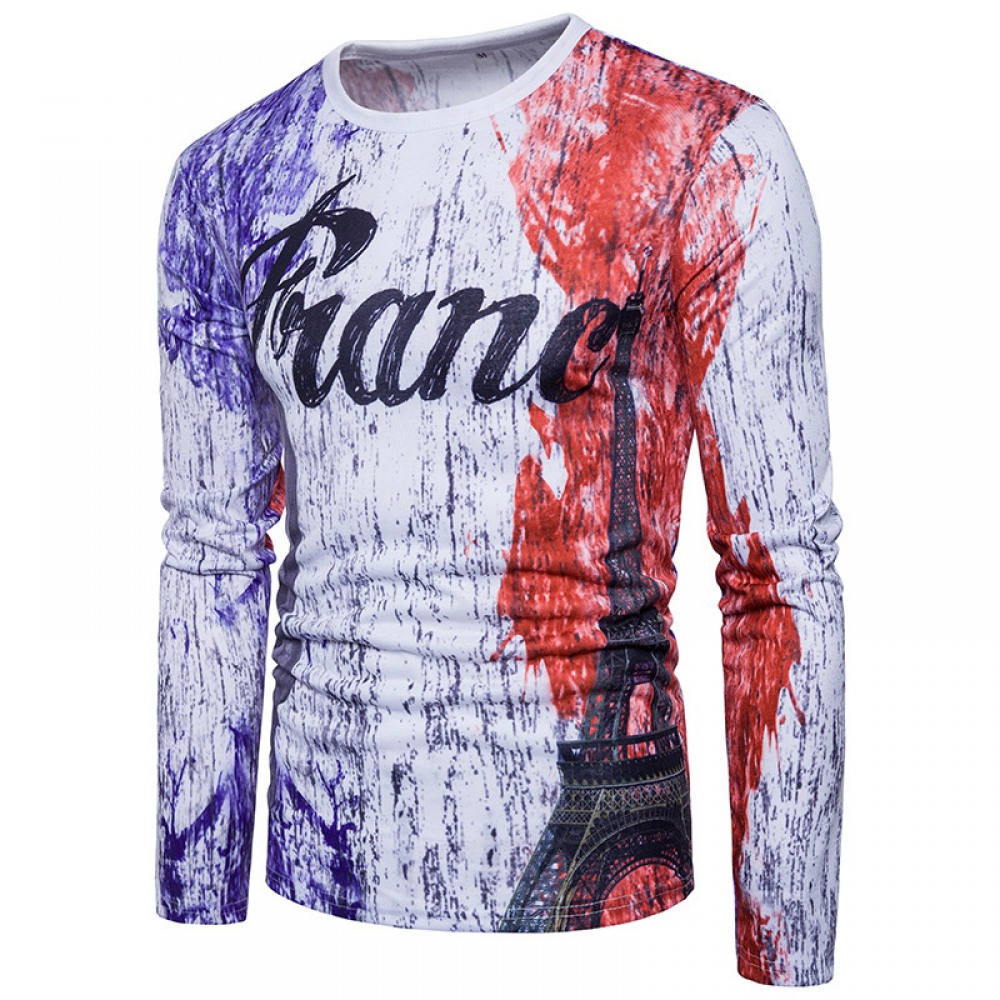 New Style Men's Special Letter 3D Printing Round Neck Long Sleeve T-Shirt