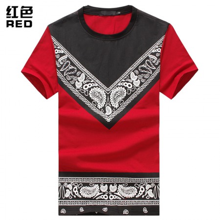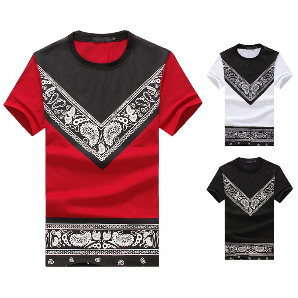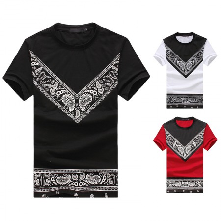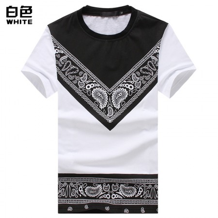 Flat Summer New Men's Round Neck Fashion Short-Sleeved Ethnic Print All-Match T-Shirt