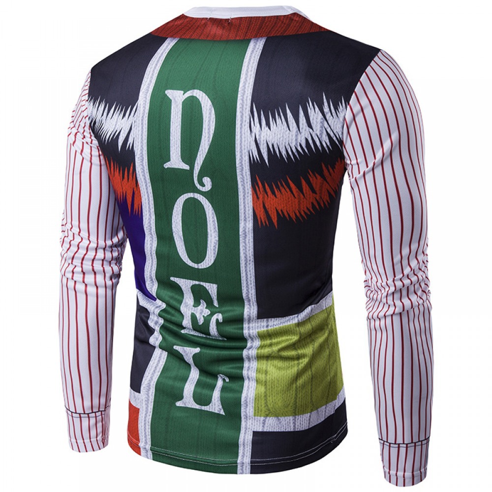 Hot Sale New Men's Personality Christmas Tree Letter Printing Round Neck 3D Long-Sleeved T-Shirt