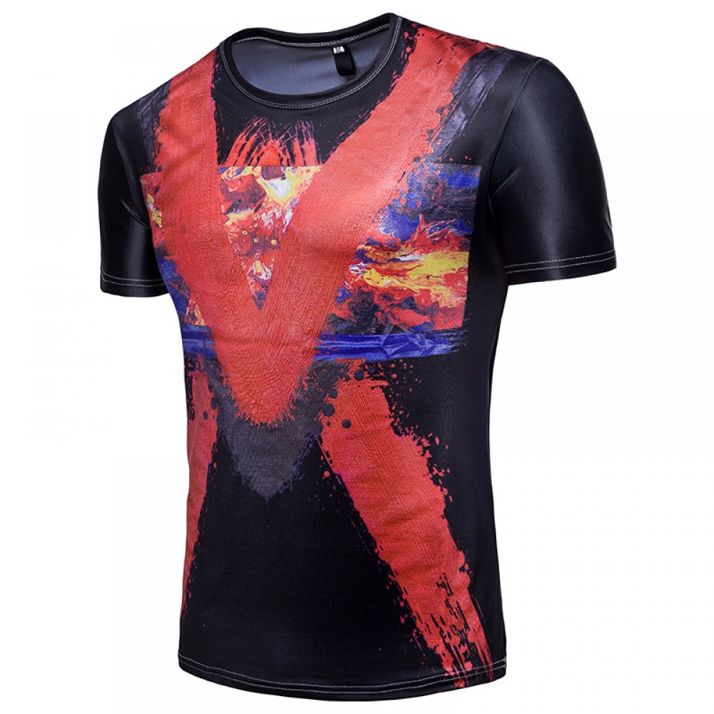Men's 3D Short-Sleeved T-Shirt Splash Ink Printing T-Shirt Graffiti Printing T-Shirt