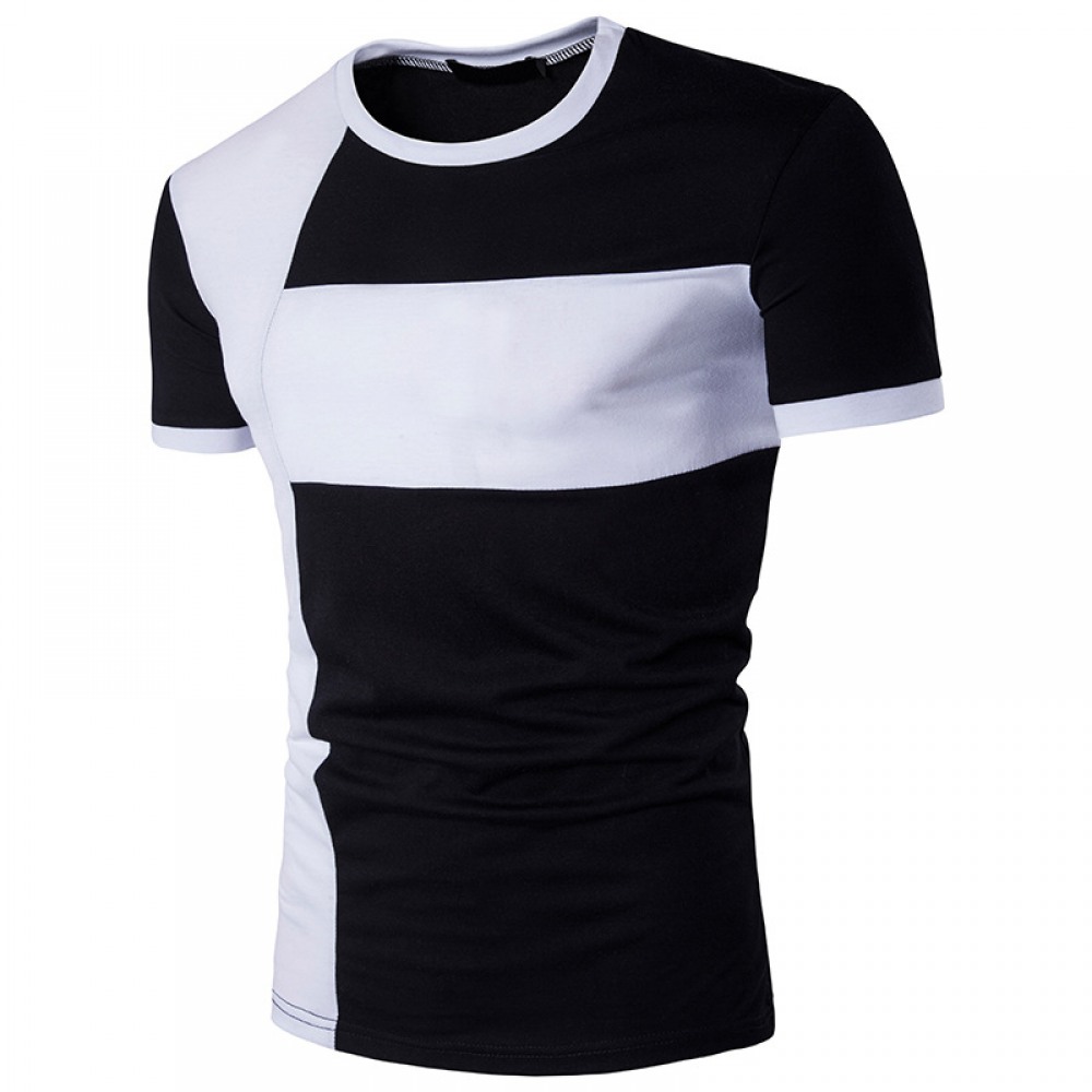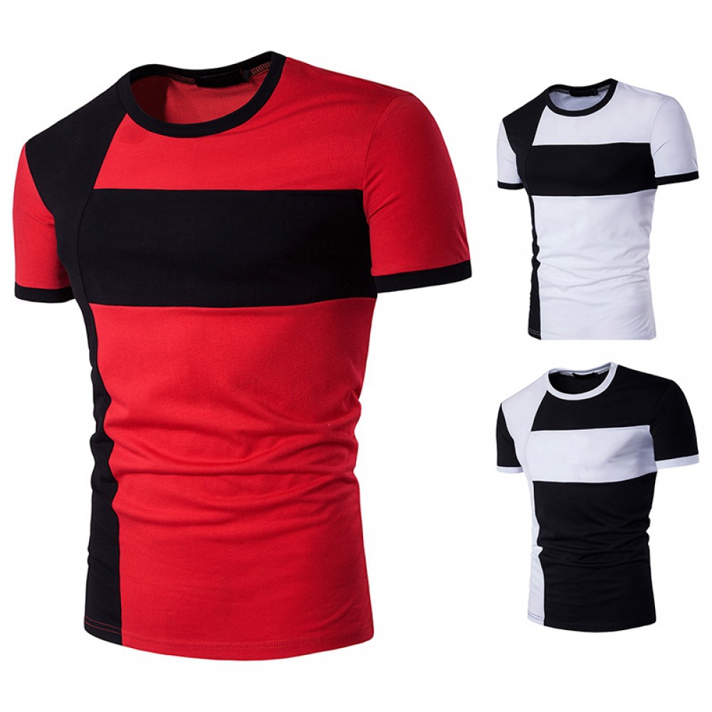 New Summer Men's Short-Sleeved T-Shirt Mens Contrast Striped Slim Casual T-Shirt