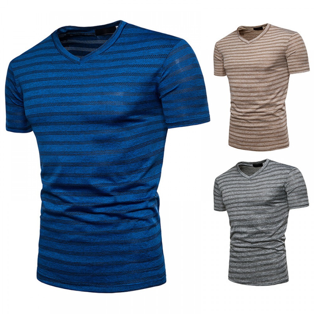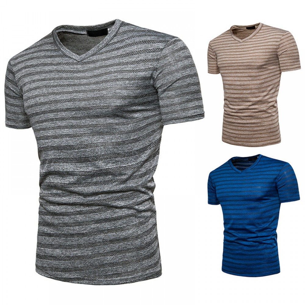 New Summer Men's Short-Sleeved T-Shirt Mens Contrast Striped Slim-Fit Casual T-Shirts