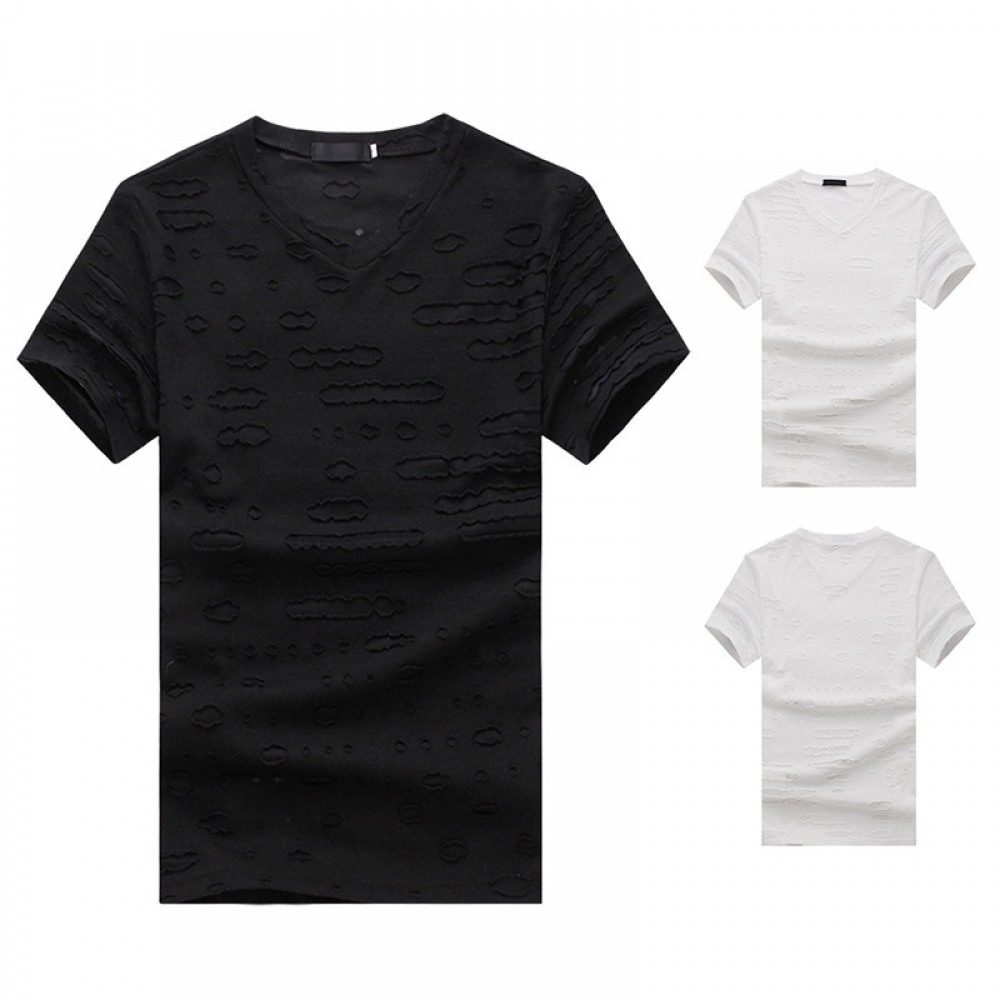 Hollow Men's Style A Letter Printing Lapel Short Sleeve Large Size T-Shirt